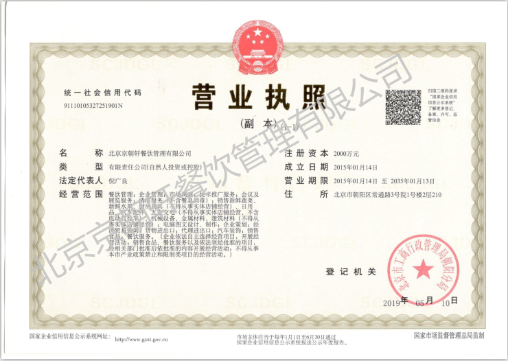 北京京朝軒餐飲管理有限公司是一家專業的餐飲管理公司,主要業務范圍,食堂承包、食堂托管、快餐配送、現代廚房設計、裝修以及餐飲人員培訓、輸出一體化的綜合性后勤服務企業。 公司是以北京市朝陽區為中心輻射全國的連鎖企業。公司注冊資金2000萬元。 歷經多年的實踐和發展,從最初的一群伙頭軍到現在形成網絡組織的餐飲精英管理團隊,公司發展成為擁有20多個連鎖網點的規模化企業。 經過多年的努力奮斗,創造了燦若星辰般的奇跡和輝煌,其發展歷程仿佛就是現代餐飲業發展的縮影和代表。